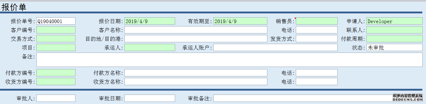 | 审批日期 | 该报价单被审批的日期,单据审批后,系统会自动记录该日期。 |